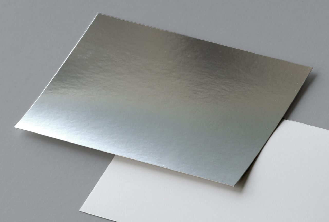 食品対応・銀台紙 / 厚さ約0.38mm (D_#01_0085_6-2) 食品対応・銀台紙 /厚さ約0.38mm(銘柄:ミラックスF V12S F517) 坪量:310g/㎡ 表面は光沢のある銀色で、裏面は … 続きを読む 食品対応・銀台紙 / 厚さ約0.38mm